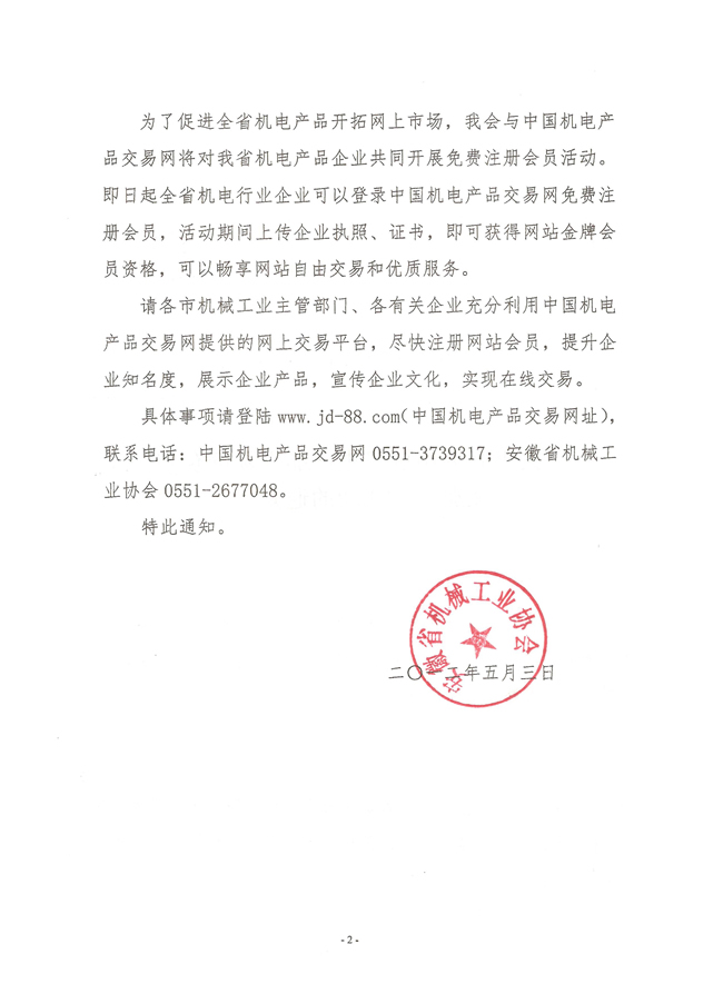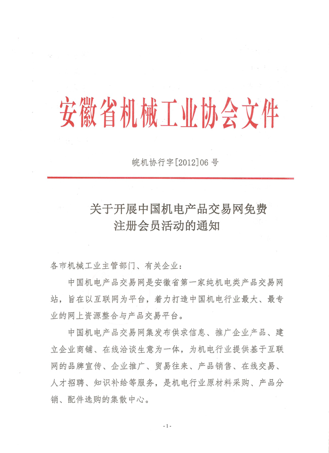 關(guān)于開展中國(guó)機(jī)電產(chǎn)品交易網(wǎng)免費(fèi)注冊(cè)會(huì)員活動(dòng)的通知