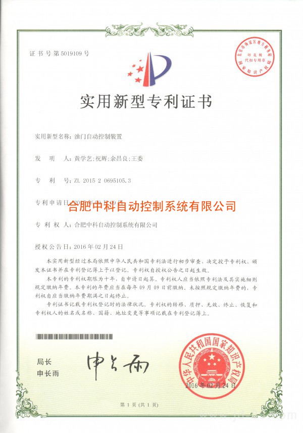發(fā)證機(jī)構(gòu): | 中華人民共和國(guó)國(guó)家知識(shí)產(chǎn)權(quán)局 | 發(fā)證時(shí)間 : | 2016-02-24 |