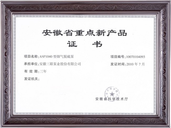 » 安徽省重點(diǎn)新產(chǎn)品證書