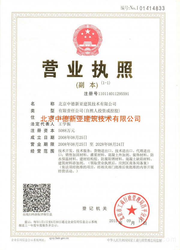 發(fā)證機(jī)構(gòu): | 北京市工商行政管理局 | 發(fā)證時(shí)間 : | 2015-09-17 |