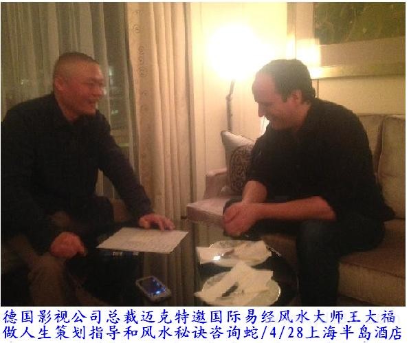 2013年,德國影視公司總裁邁克先生到上海拍攝大片期間,慕名特邀王大福先生做人生策劃指導與家居風水及公司風水布局天機咨詢服務。