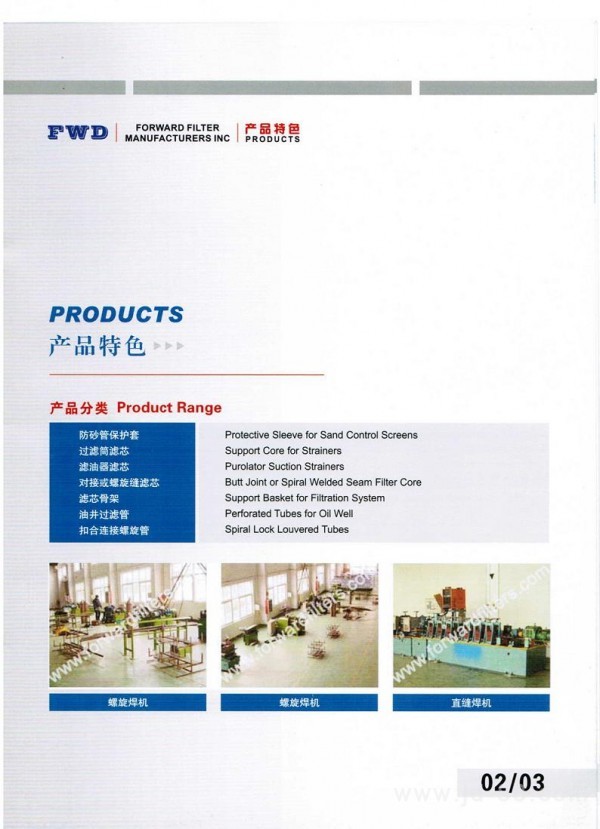無錫奮圖過濾材料有限公司(Forward Filter Manufacturers Inc)位于無錫高新區(qū),工廠專業(yè)生產(chǎn)用于工業(yè)過濾的螺旋和直縫焊接沖孔網(wǎng)管過濾材料配件;網(wǎng)孔管;篩網(wǎng);過濾筒濾芯;濾芯骨架;不銹鋼中心桿;不銹鋼支撐骨架。目前已經(jīng)與一些國際知名品牌公司建立了固定的供應(yīng)產(chǎn)業(yè)鏈。