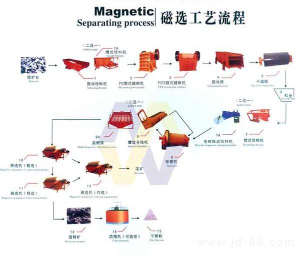 注:此工藝按標(biāo)準(zhǔn)流程工藝設(shè)計(jì),可按客戶赤鐵礦選礦設(shè)備年產(chǎn)量及要求的不同優(yōu)化設(shè)計(jì)。詳細(xì)訪問http://www.cixuankuang.com