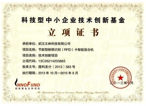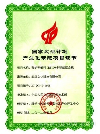 熱烈慶祝武漢文林科技節(jié)能型射頻識(shí)別(RFID)卡智能層壓機(jī),繼榮獲國(guó)家火炬計(jì)劃項(xiàng)目后,再次于技術(shù)創(chuàng)新項(xiàng)目中獲得國(guó)家創(chuàng)新基金支持,文林科技將會(huì)進(jìn)一步加強(qiáng)自主創(chuàng)新,提高創(chuàng)新能力和市場(chǎng)競(jìng)爭(zhēng)力,推動(dòng)企業(yè)技術(shù)進(jìn)步,為國(guó)家科技和經(jīng)濟(jì)的發(fā)展做出更大貢獻(xiàn)。
