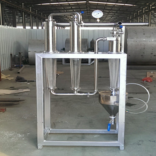 一種淀粉乳除砂器,多個(gè)一級(jí)除砂器均由上部diyi圓筒體和下部透明diyi圓錐筒體構(gòu)成,diyi圓筒體的外側(cè)壁上設(shè)有進(jìn)料口,diyi圓筒體的頂端連接出料管,各個(gè)diyi圓筒體上的出料管與主出料管相連通,diyi圓錐筒體的底端連接在一級(jí)回流管上;二級(jí)除砂器由上部第二圓筒體和下部第二圓錐筒體構(gòu)成,第二圓筒體外側(cè)壁連接一級(jí)回流管,第二圓筒體頂端設(shè)有二次回流口,二次回流管同二次回流口相連,第二圓錐筒體底端與集砂器相連。本實(shí)用新型采用透明一級(jí)除砂器的圓錐筒體,通過觀察細(xì)砂沿一級(jí)除砂器的圓錐筒體內(nèi)壁螺旋下降到一次回流管時(shí)是否夾雜淀粉乳來開啟二次除砂器,達(dá)到了節(jié)省了生產(chǎn)成本,提高了工作效率。