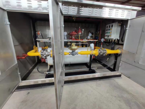 調(diào)壓,計量,加臭裝置將氣化后的氣體經(jīng)過調(diào)壓器穩(wěn)壓后通過流量計計量,加臭機(jī)根據(jù)流量信號按比例自動向管道中補(bǔ)充臭劑后。
