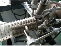 PVC鋼絲增強管生產(chǎn)線也稱PVC吸塵器軟管生產(chǎn)線或PVC鋼絲伸縮管生產(chǎn)線,該生產(chǎn)線由鋼絲放卷繞簧裝置、單螺桿塑料擠出機、模具、冷卻水槽、旋轉(zhuǎn)牽引機、盤卷機等組成。