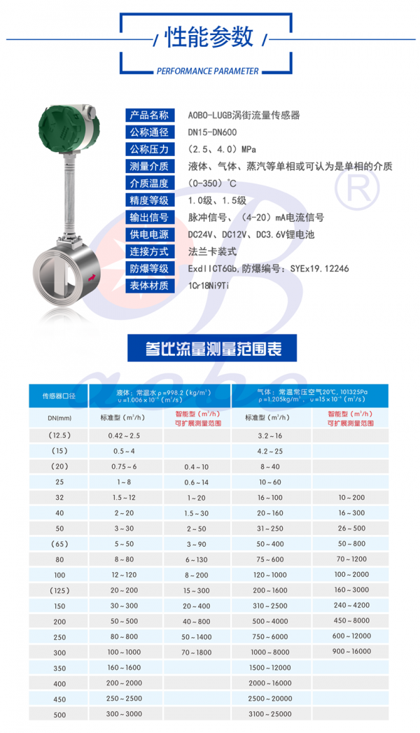 » 濰坊奧博 ABDT-LUGB蒸汽導(dǎo)熱油渦街流量計廠家