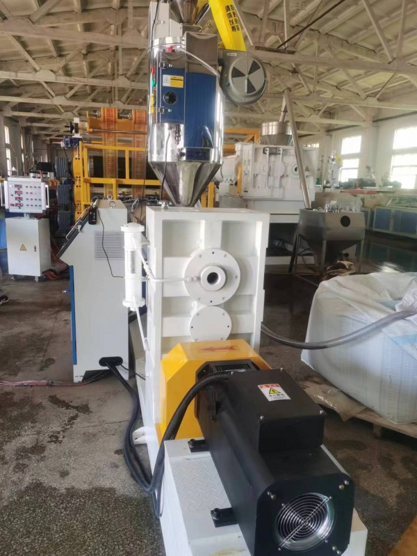 1、高有效單螺桿擠出機; 2、衣架式機頭; 3、三輥壓延機; 4、冷卻托架; 5、冷水機; 6、牽引機; 7、切割機; 8、吸塵裝置。