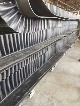 詳細(xì)信息 抗撕裂大傾角裙邊隔板帶, 是由基帶、擋邊、橫隔板3部分組成。擋邊起防止物料測滑撒落的作用。為便于繞過滾筒,檔邊設(shè)計成波紋狀;橫隔板的作用是承托物料,為了實現(xiàn)大傾角輸送,采用T型TC型。檔邊和橫隔板是用二次硫化的方法與基帶連接的,具有很高的連接強(qiáng)度。用于輸送易散落的粉狀、粒狀、小塊狀、糊狀及液態(tài)狀物料。