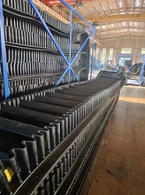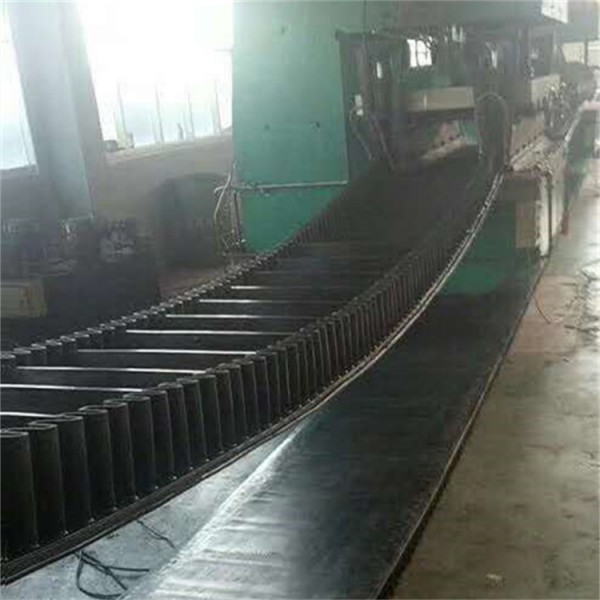 工業(yè)擋邊輸送帶 普通型耐高溫波形帶 上料機(jī)波紋帶 詳細(xì)信息 工業(yè)擋邊輸送帶, 是由基帶、擋邊、橫隔板3部分組成。擋邊起防止物料測(cè)滑撒落的作用。為便于繞過(guò)滾筒,檔邊設(shè)計(jì)成波紋狀;橫隔板的作用是承托物料,為了實(shí)現(xiàn)大傾角輸送,采用T型TC型。檔邊和橫隔板是用二次硫化的方法與基帶連接的,具有很高的連接強(qiáng)度。用于輸送易散落的粉狀、粒狀、小塊狀、糊狀及液態(tài)狀物料。