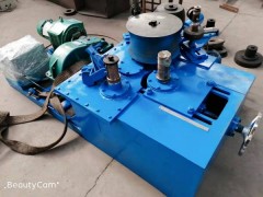 設(shè)備主要由主機(jī)、液壓站、電控柜三大部分組成。由電動(dòng)油泵輸出的高壓油,經(jīng)高壓油管送入工作油缸或馬達(dá)內(nèi)、高壓油推勸工作油缸或馬達(dá)內(nèi)柱塞,產(chǎn)生推力和扭矩,通過模具部件彎曲型材。