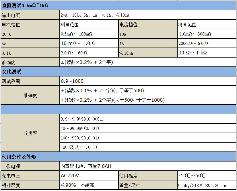 2 直阻測試功能,針對Yn型(高壓繞組不含)、Y型和△型繞組均可采用三相自動方式測試,并計算出三相不平衡率;可輸出電流20A,可以滿足配網(wǎng)變壓器的低壓線圈極低阻值的測試。