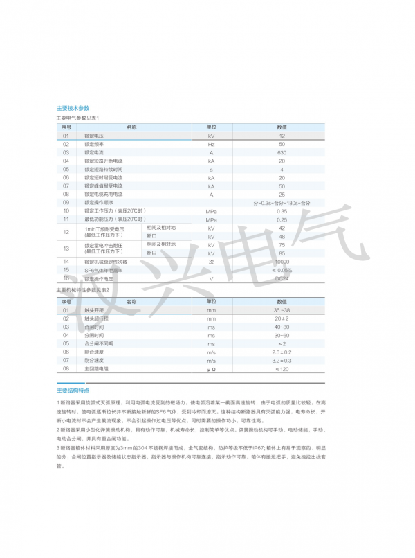 1斷路器采用旋弧式滅弧原理,利用電弧電流受到的磁場力,使電弧沿著某一截面高速旋轉(zhuǎn),由于電弧的質(zhì)量比較輕,在高 速旋轉(zhuǎn)時,使電弧逐漸拉長并不斷接觸新鮮的SF6氣體,受到冷卻而熄滅。這種結(jié)構(gòu)斷路器具有滅弧能力強,電壽命長,開 斷小電流時不會產(chǎn)生截流現(xiàn)象,不會引起操作過電壓等優(yōu)點,同時需要的操作功小,可靠性高。