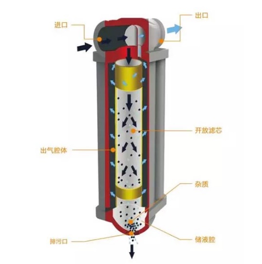 壓縮空氣中的污染物主要有兩種,一種是被吸入壓縮機(jī)的大氣污染物,其中80%直徑在2μm以下;另一種是壓縮機(jī)的帶出物,呈煙霧狀態(tài),消散開來便成為0.01~0.8μm的氣溶膠。一般性質(zhì)的濾芯可以除掉大部份液體和固體物質(zhì)微粒,其粒徑一般大于1μm,而要除掉非常微小的固體粒子以及油水的氣溶膠,就必須采用精密濾芯。