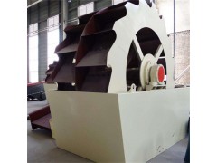 該型洗砂機(洗沙機)經電動機、減速機的傳動,驅動水槽中的葉輪在水槽中作圓周性轉動,從而將水槽中的砂石或礦渣顆粒物料在水中攪拌、翻轉、淘洗并使受水物料在葉輪中脫水后排出。