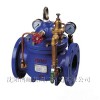 當(dāng)閥門(mén)從進(jìn)口端給水時(shí),水流過(guò)針閥進(jìn)入主閥控制室,出口壓力通過(guò)導(dǎo)管作用到導(dǎo)閥上。當(dāng)出口壓力高于導(dǎo)閥彈簧設(shè)定值時(shí),導(dǎo)閥關(guān)閉。控制室停止排水,此時(shí)主閥控制室內(nèi)壓力升高并關(guān)閉主閥,出口壓力不再升高。