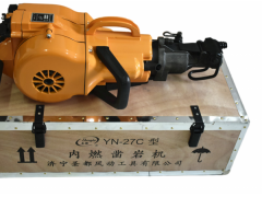 YN27C型內燃鑿巖機具有礦山開采鑿孔、建筑施工、地質勘察、水泥路面、柏油路面等各種劈裂、破碎、搗實、鏟鑿等功能,廣泛用于礦山、筑路、采石、建筑、鐵路搗固、地質勘察、國防工程等。