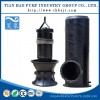 天昊潛水軸流泵的泵段由進(jìn)水喇叭口,葉輪部件,葉輪外殼和導(dǎo)葉體四大零件組成。潛水電機(jī)是全密封干式異步電動機(jī),機(jī)殼將電機(jī)封閉,電機(jī)上端電纜出線處有靜密封裝置,電機(jī)下端蓋出軸處有轉(zhuǎn)動密封裝置,潛水電機(jī)具備一切潛水運行的安全可靠性能。對密封滲漏、線圈和軸承溫度均有檢測、報警和保護(hù)裝置,不影響電機(jī)正常運轉(zhuǎn)的早期滲漏(只報警)。當(dāng)線圈溫度超過135度,軸承溫度超過90度時,采用斷電保護(hù),所有保護(hù)器由一個潛水泵專用保護(hù)器進(jìn)行監(jiān)控,以保證水泵安全使用。