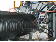 2、纏繞:熱態(tài)纏繞成型工藝,熔融狀態(tài)的HDPE平料帶及包覆PP的圓形加強筋同步纏繞在加熱到預定溫度的鋼模上。