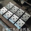 磨床支撐滑塊滑動(dòng)軸承托瓦,承載能力大、耐沖擊、工作平穩(wěn)、吸震減震無(wú)噪聲等優(yōu)點(diǎn),現(xiàn)今大多軋輥磨床、軋鋼機(jī)球磨機(jī)等重型機(jī)械設(shè)備仍采用其作為轉(zhuǎn)動(dòng)支撐,為了滑動(dòng)軸承(軸瓦、托瓦)表面的摩擦性質(zhì)在其表面上澆鑄的減摩材料稱為軸承襯。軸瓦和軸襯的材料統(tǒng)稱為滑動(dòng)軸承材料。常用的滑動(dòng)軸承材料軸承合金又叫烏金、白合金、巴氏合金。所以此類軸瓦又稱烏金軸瓦、白合金軸瓦、巴氏合金軸瓦。巴氏合金軸瓦的性能特點(diǎn):有減磨性、耐磨性、磨合性和摩擦相容性;在常溫下具有足夠的強(qiáng)度,包括耐壓和耐疲勞強(qiáng)度;具有好的摩擦順應(yīng)性和嵌藏性;具有好的加工工藝性;流動(dòng)性好利于澆注;好的導(dǎo)熱性;耐腐蝕,熱膨脹系縮小等優(yōu)點(diǎn)。巴氏合金軸瓦在冶金機(jī)械、建材機(jī)械、造紙機(jī)械、交通運(yùn)輸、化工、電力等動(dòng)力機(jī)械設(shè)備應(yīng)用。金鑄鑄造巴氏合金、巴氏合金軸瓦、巴氏合金托瓦、巴氏合金軸套。