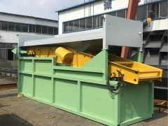 4、特制擋水板設(shè)計(jì):濕混凝土分離機(jī)的污水斗內(nèi),設(shè)有五個(gè)上下錯(cuò)開(kāi)的擋水板,污水在向出水口流動(dòng)的過(guò)程中,砂子會(huì)被下部的擋水板擋下來(lái),并且上下錯(cuò)開(kāi)的擋水板設(shè)計(jì)會(huì)不斷改變水流的方向,也會(huì)減緩水流的速度,更加有利于砂子的沉淀;