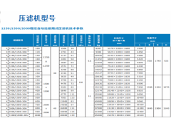 其他壓濾機(jī)型號及技術(shù)參數(shù)如圖