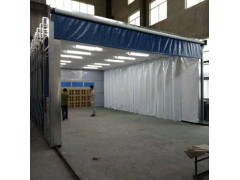 噴漆房后部采用防火巖棉夾芯板(可更換為鍍鋅板制作)作為底板,并合理設(shè)置多個吸風口,噴漆房內(nèi)漆霧能有效進入后道廢氣處理裝置。伸縮式噴漆房采用活動式框架結(jié)構(gòu),內(nèi)襯玻璃纖維防火篷布,通過進出口門頭處的驅(qū)動電機,通過軌道帶動整體結(jié)構(gòu)進行伸縮運動;非工作時間可將噴漆房整體折疊,節(jié)省了車間場地,作業(yè)時根據(jù)實際情況調(diào)節(jié)入口處卷簾,控制補風,從而提高作業(yè)時產(chǎn)生漆霧的回收效果。