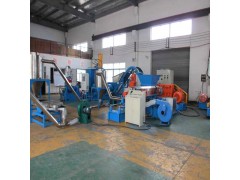 橡膠促進劑母粒造粒機:密煉機——提升機——雙腕喂料機——單螺桿造粒機——隔離劑喂料系統(tǒng)——對吹熱切機頭——一級旋風(fēng)分離器——二級旋風(fēng)分離器——隔離劑回收系統(tǒng)——加長風(fēng)冷振動篩——成品料倉