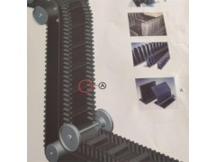 輸料機擋邊帶, 是由基帶、擋邊、橫隔板3部分組成。擋邊起防止物料測滑撒落的作用。為便于繞過滾筒,檔邊設(shè)計成波紋狀;橫隔板的作用是承托物料,為了實現(xiàn)大傾角輸送,采用T型TC型。檔邊和橫隔板是用二次硫化的方法與基帶連接的,具有很高的連接強度。用于輸送易散落的粉狀、粒狀、小塊狀、糊狀及液態(tài)狀物料。